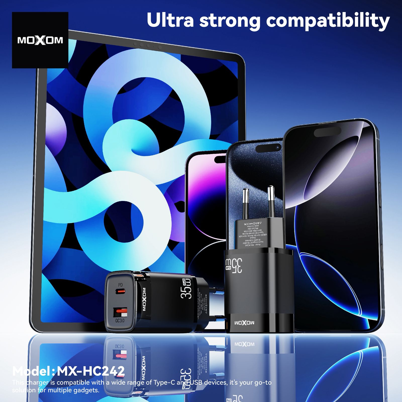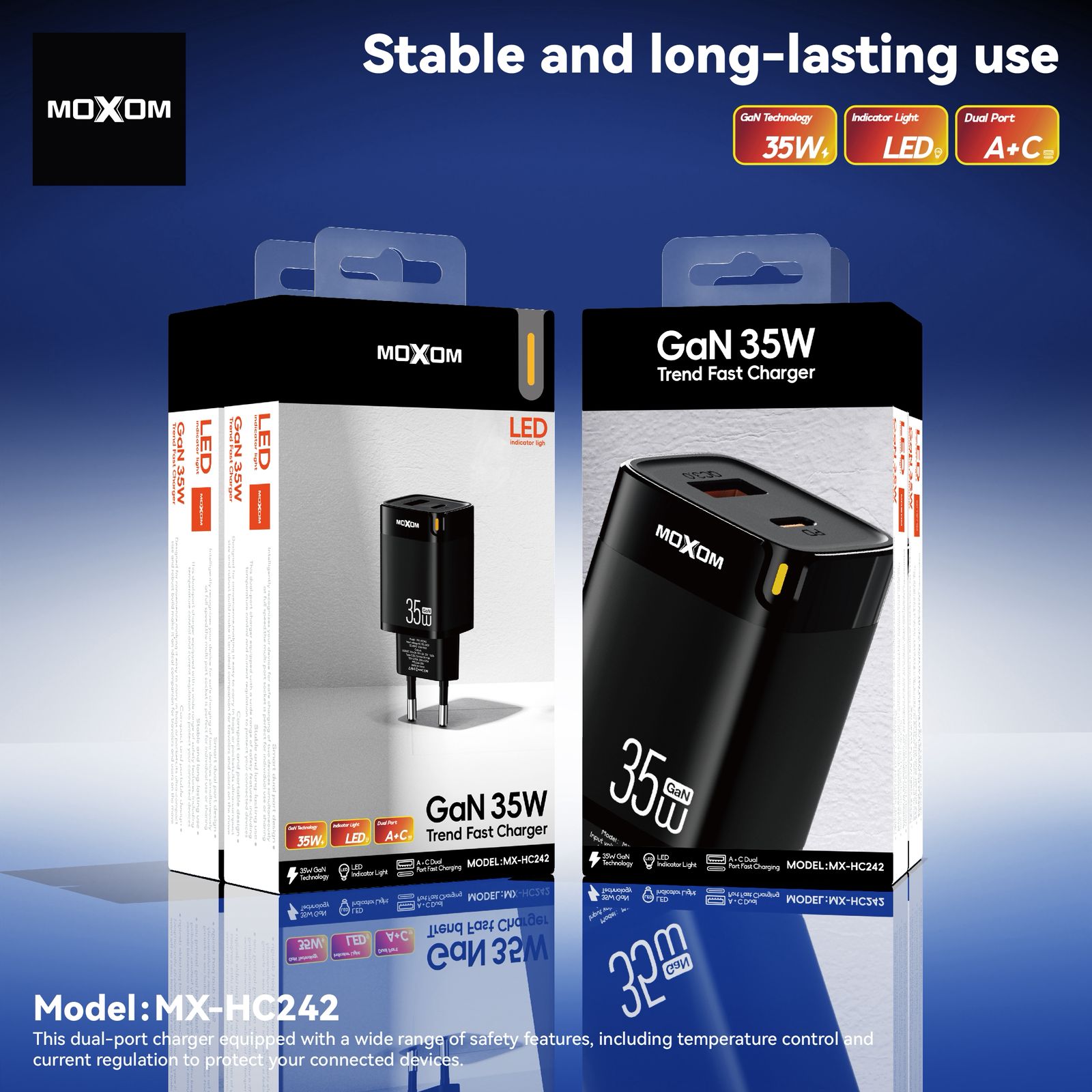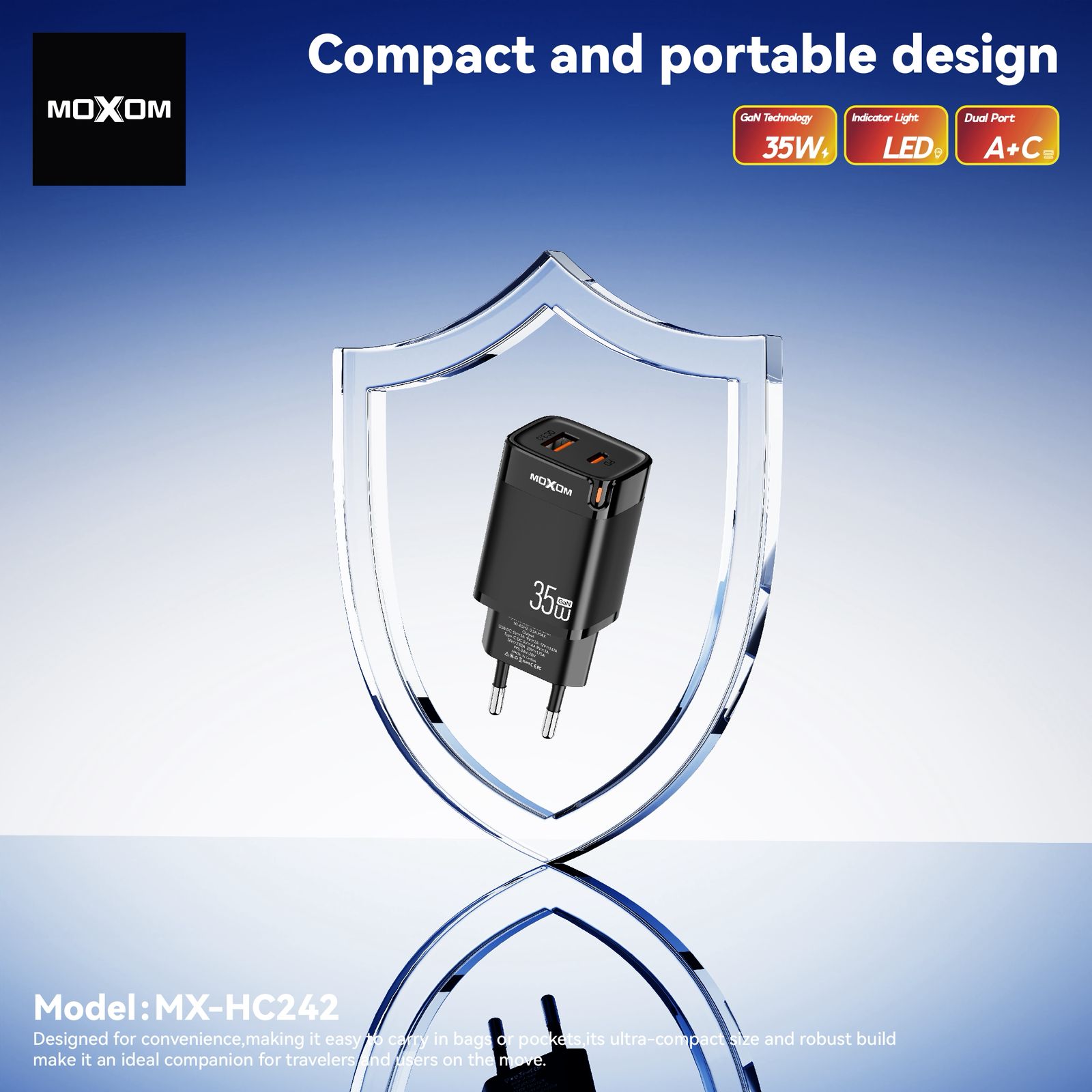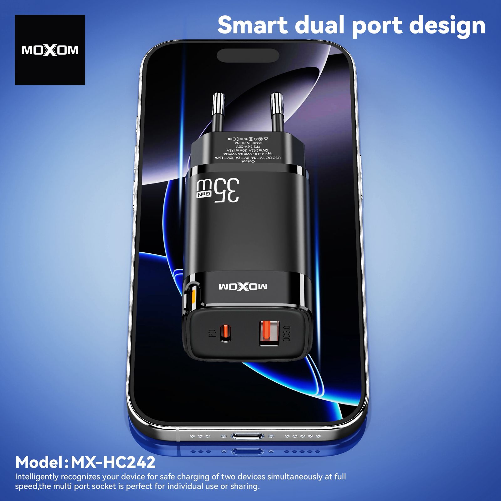 MOXOM GaN 35W Dual Port Fast Charger (USB-C + USB-A) – MX-HC242