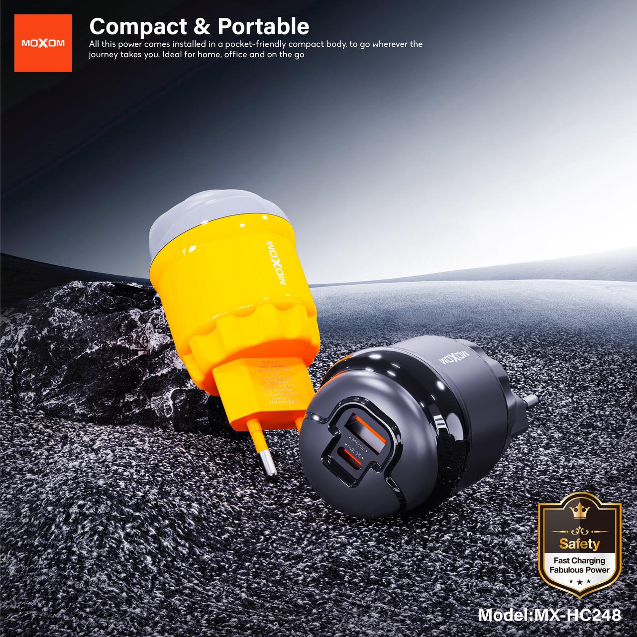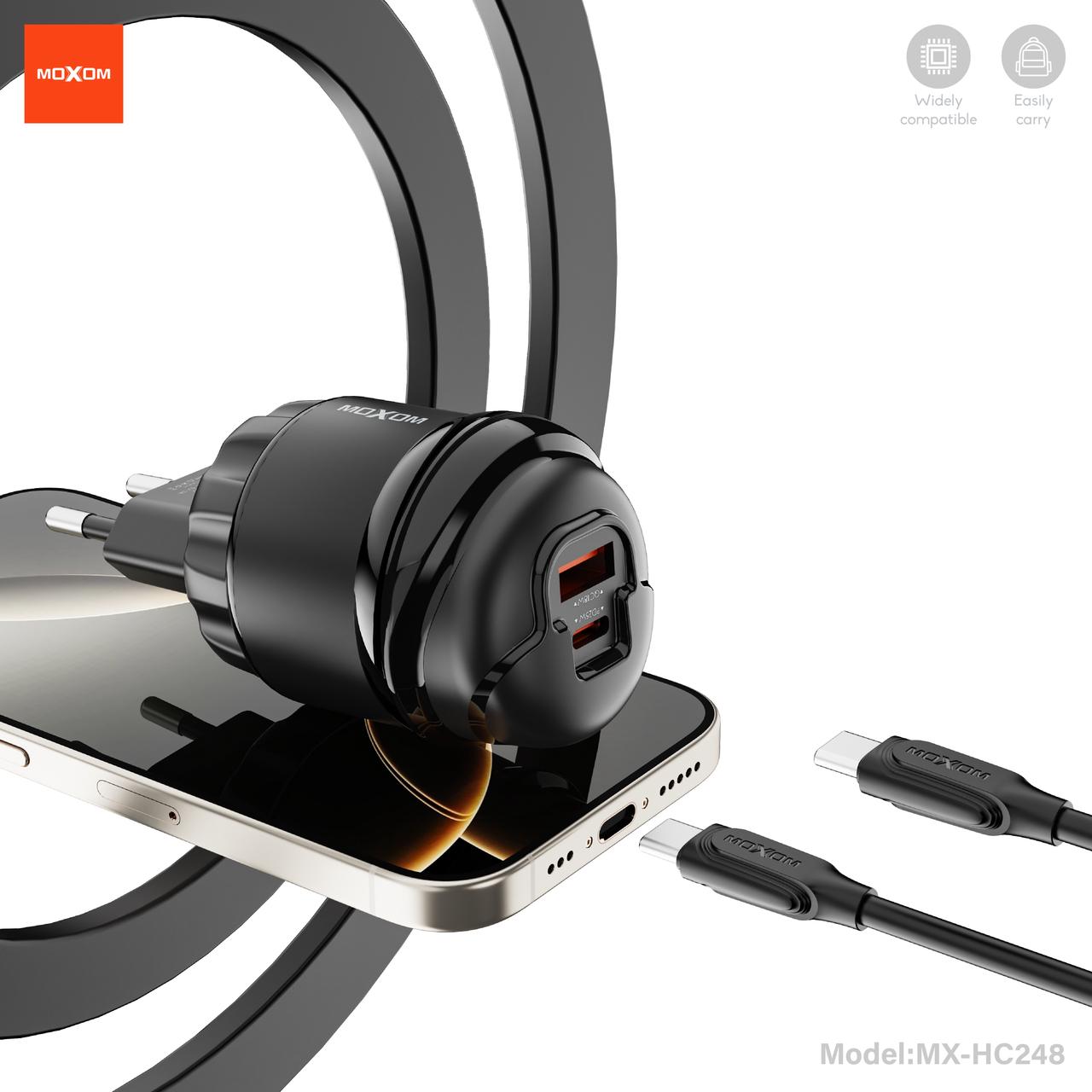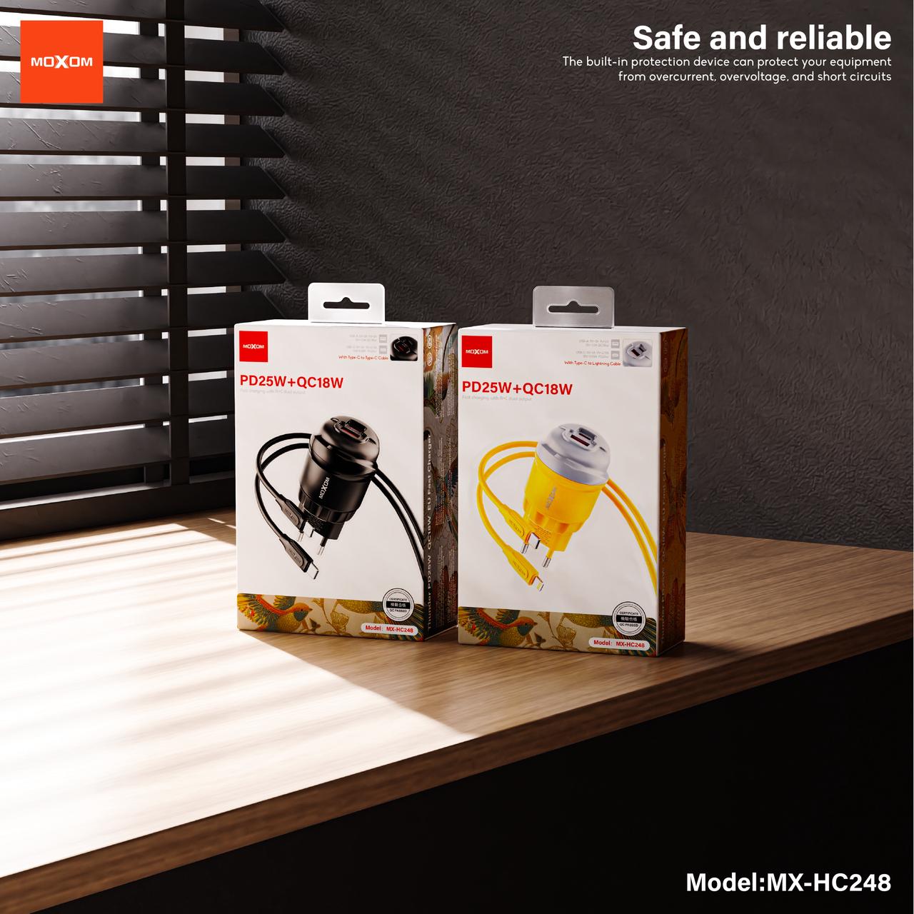 MOXOM PD25W + QC18W Fast Charging Wall Adapter with Built-in Type-C & Lightning Cable (MX-HC248)
