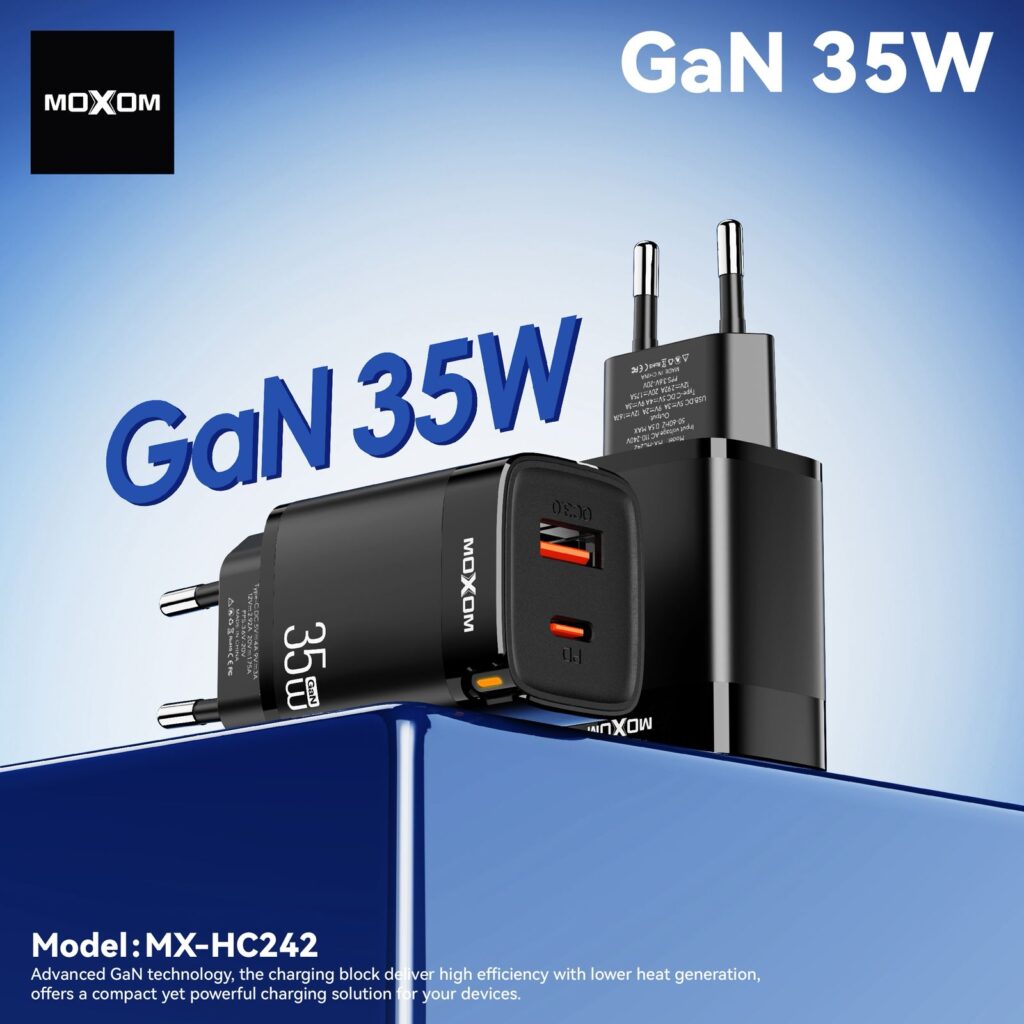 MOXOM GaN 35W Dual Port Fast Charger (USB-C + USB-A) – MX-HC242